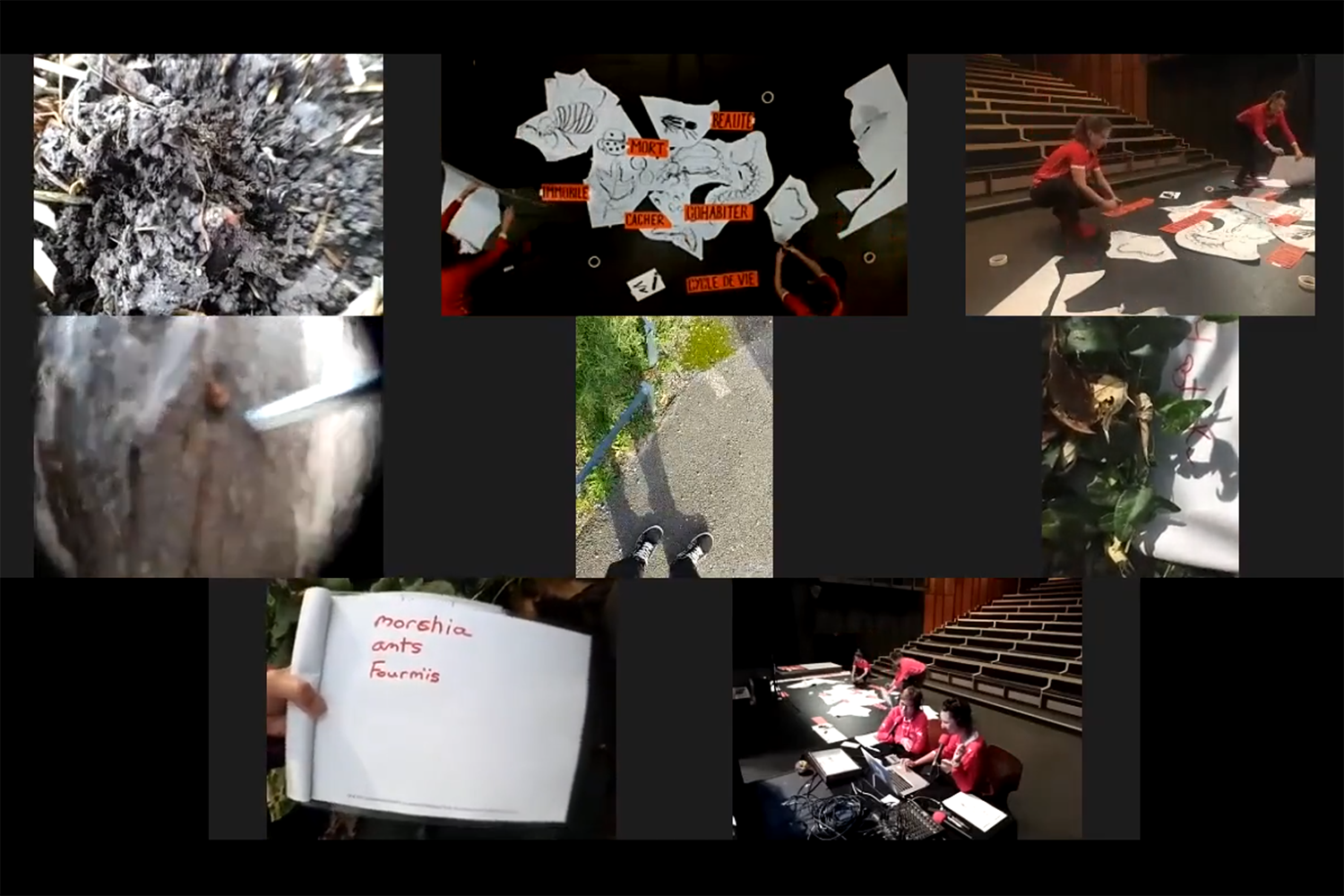 Un·e expert·e ou un·e chercheur·se local·e, Nil Dinç (conception, jeu et montage en direct), Erwan Quintin, (création et régie sonore, brief des équipes), Lucile Poiret (régie générale, scénographie, schéma en direct).
